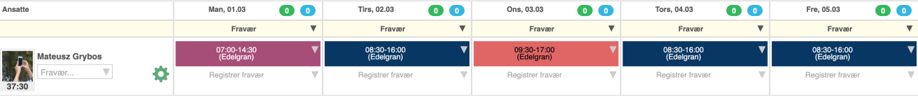 No kan du bla i Turnus og kontrollere at valget stemmer. Du kan når som helst trykke på de ulike dagene og velge en annen vakt dersom endringer oppstår.